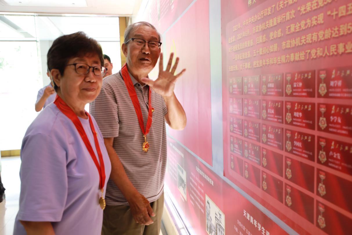 活动开始,全体党员面向党旗庄严宣誓,重温入党誓词。老党员们笑容灿烂、精神抖擞,亲自将写有自己名字的荣誉牌贴在“光荣在党50年”荣誉墙上。据介绍,“光荣在党50年”荣誉墙已成为天津市政协机关红色文化传承的重要载体,宣传老党员工作期间先进事迹、工作成绩及离退休后继续为党奉献、老有所为的生动平台,激励着机关党员干部坚定理想信念、赓续红色血脉、恪守对党忠诚。