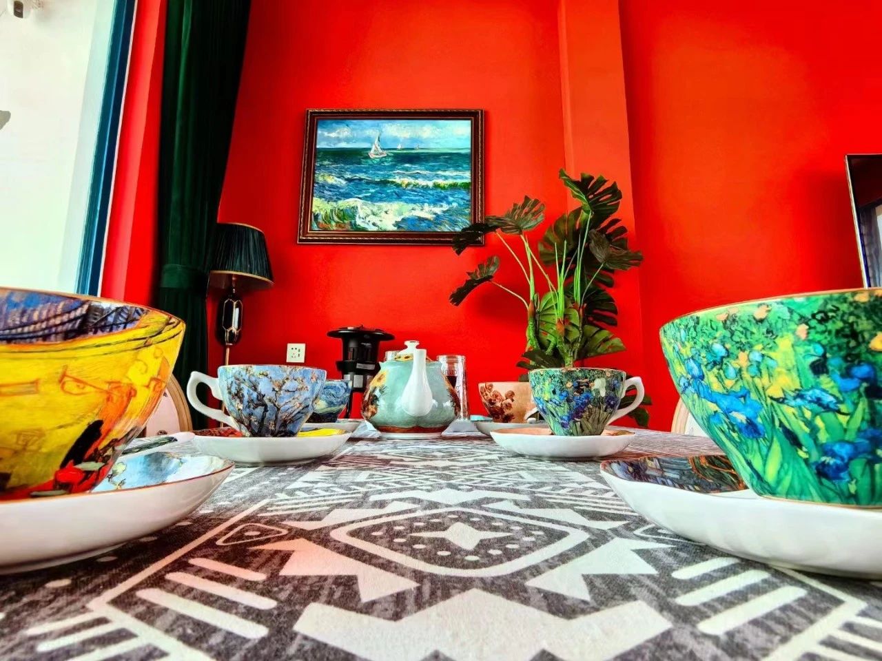 走进民宿,最引人注目的便是民宿的墙上色彩斑斓的梵高画作,用色大胆、线条流畅,每一幅画都仿佛诉说着一个故事。