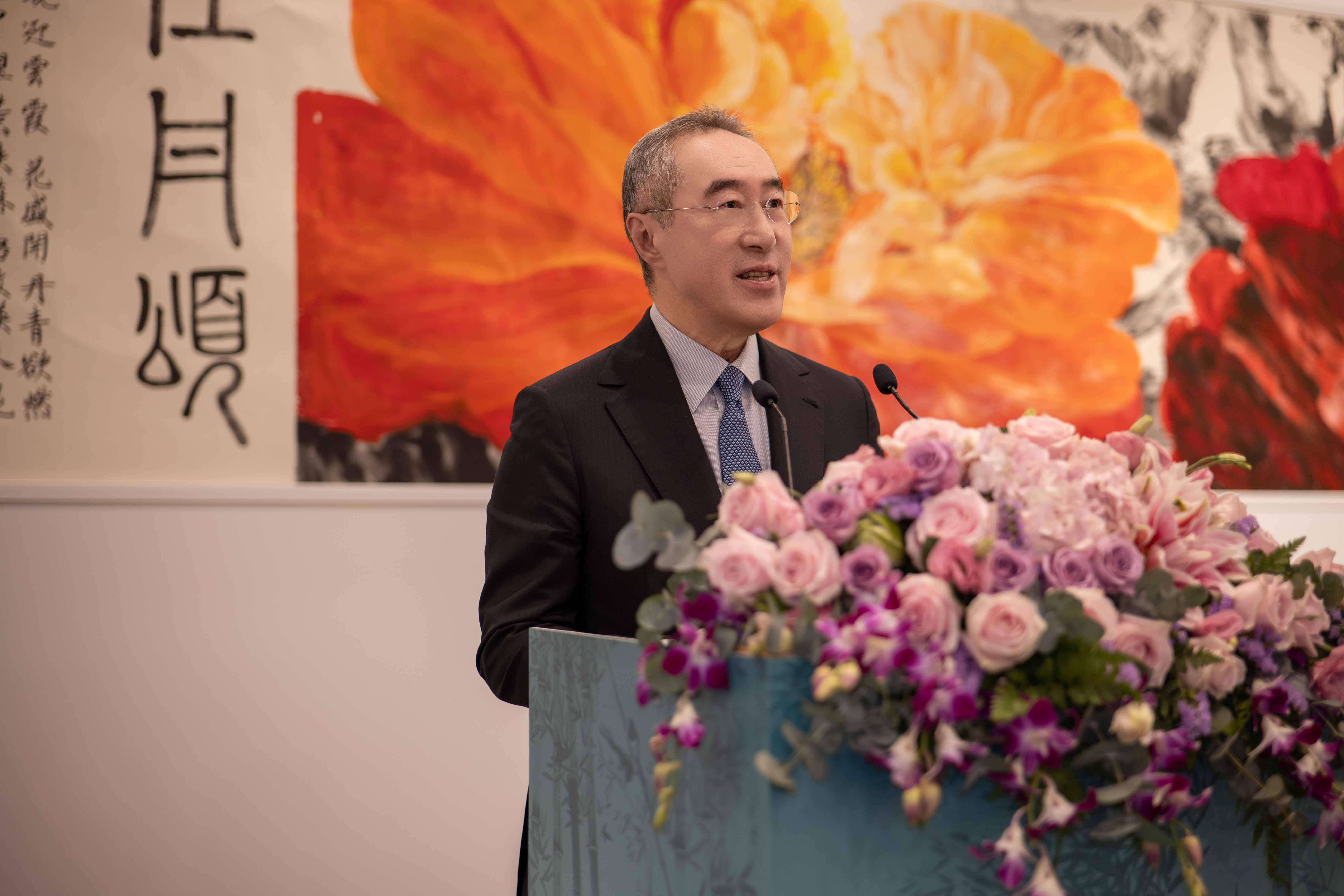 香港特区政府署理政务司司长卓永兴在致辞中高度赞赏李小琳女士。他表示,李小琳女士是一位杰出的企业家,曾领导三家在港上市企业,对香港经济发展作出了重要贡献,与香港结下了深厚的情谊。近年来,李小琳女士投身艺术领域,创作了一系列高水平的诗词、书法与绘画作品。本次展览通过诗书画作品展现了中华优秀女性的优雅风华,作品中娴熟运用传统意象,如梅、兰、竹、菊、莲、丹、心等高洁主题,配以泼墨、丹青技法,抒发细腻情感,彰显出非凡的艺术造诣。观赏李小琳女士的作品,不仅能够体验到人间大爱的美妙意境,更能领略诗书画的独特魅力,感受中华文化的博大精深。特区政府致力于弘扬中华文化,推动香港成为中外文化艺术交流中心,相信此次展览将吸引更多香港市民感受中华艺术的诗情画意,促进社会对文化的热爱与对国家的认同。