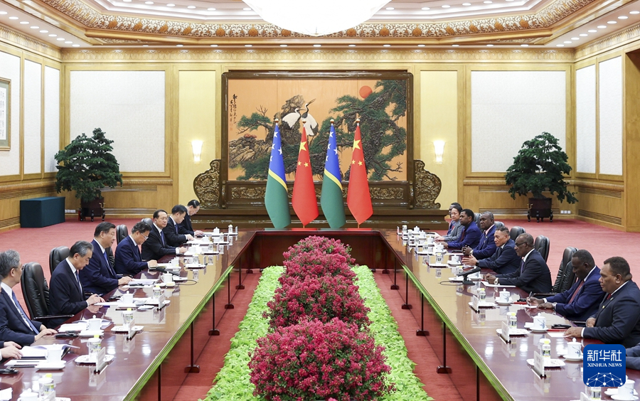 习近平强调,中方始终坚持独立自主和平外交政策,主张各国无论大小、强弱、贫富一律平等。中国同所罗门群岛等太平洋岛国开展友好合作,是真心诚意帮助岛国实现发展,是在“南南合作”框架内的互帮互助,属于“全球南方”共同发展的范畴,不针对第三方,不谋取任何私利。中方愿继续为所罗门群岛实现发展提供力所能及的帮助,加强在联合国、太平洋岛国论坛等多边机构中协调配合,维护发展中国家共同利益。