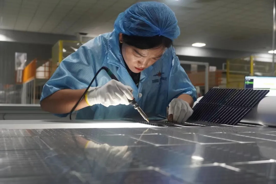 手持一个类似大型绣花针的电焊工具,俯身研究着面前的光伏板,时而“绣”上几针……这是马学花的日常工作。8月8日,当采访团走进位于宁夏回族自治区同心县的英利新能源(宁夏)有限公司时,在高度自动化的生产线之外,马学花“一针一线”般专注的神情、专业的动作吸引了大家的注意。马学花所从事的是“改片返修”工作,在这家高科技新能源企业中,是为数不多的人工技能岗位。虽然不是重点岗位,但她做得非常认真。