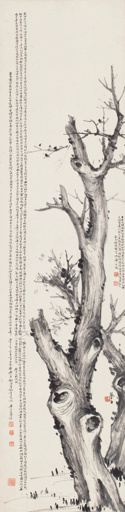 枯树图(国画)102×25cm 1921年 /王 云 绘 姚 华 题