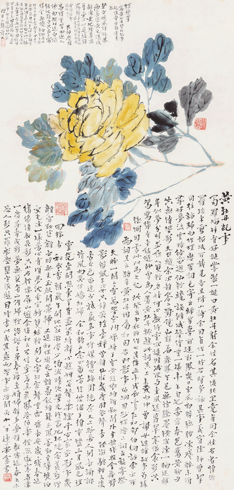 《黄牡丹图》并长题(国画) 1928年 /姚 华