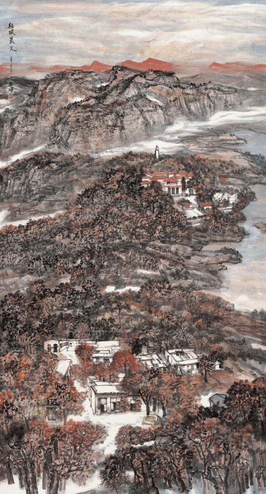柏坡晨光(国画)180×97cm 2021年 /祁海峰