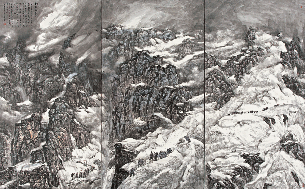 翻越夹金山(国画)180×97cm×3 2016年 /祁海峰