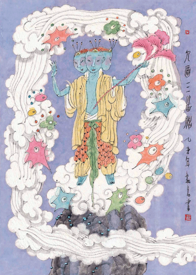 山海经·人面三首神(国画)48×32cm /朱新昌