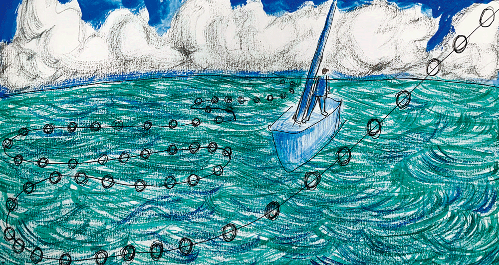 海上系列之三(纸上水彩 签字笔)20×36cm 2018年 /孙静远