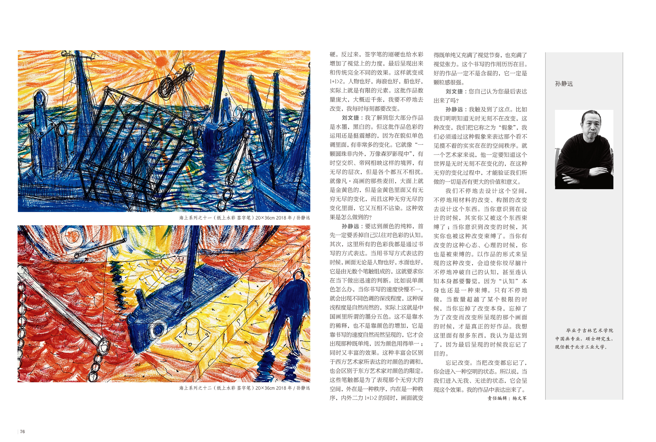 为了使读者能更深入地欣赏这批画,我特意采访了艺术家。采访的最后,孙老师谈到画画时达到的无我状态,继而无法的状态,这种境界令人神往。