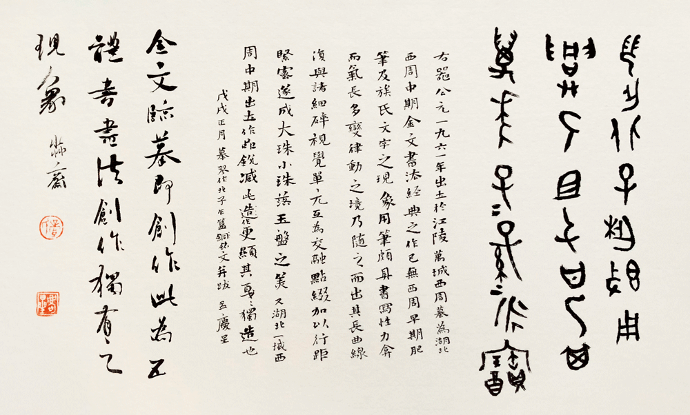 两年前的庚子暮春时节,居家复审社里推出的重点图书《中国书法全史·湖北卷》,作者孟庆星的名字首次进入视野。丰富的史料,包含人之沉浮,包含地域变迁;严谨的治学态度,离不开史料本身的解读能力,离不开学术观点的切入深度;清晰的史学表达,交融着书法的地域性成长历程,契合着地方文化的价值取向。孟庆星外绝尘扰,内挥五弦,白纸黑字,无狂放之高论,有体贴之同情。笔者在感触湖北一域书法历史脉搏隐秘颤动的同时,进一步为其著述立说的艰辛、雄心与能力所心折。之后,几次微信往还倾谈,才晓得庆星不但学问做得好,他的书法创作亦成自己的调式与幅面,堪为当代书法界为数不多的书史双修双臻者。天苍地远,水阔生烟。庆星在不断翻滚的书坛新浪潮中,悄然引发的涟漪指向回归学问及书斋,好提升自身的人文品格,滋养自身的书写形式。