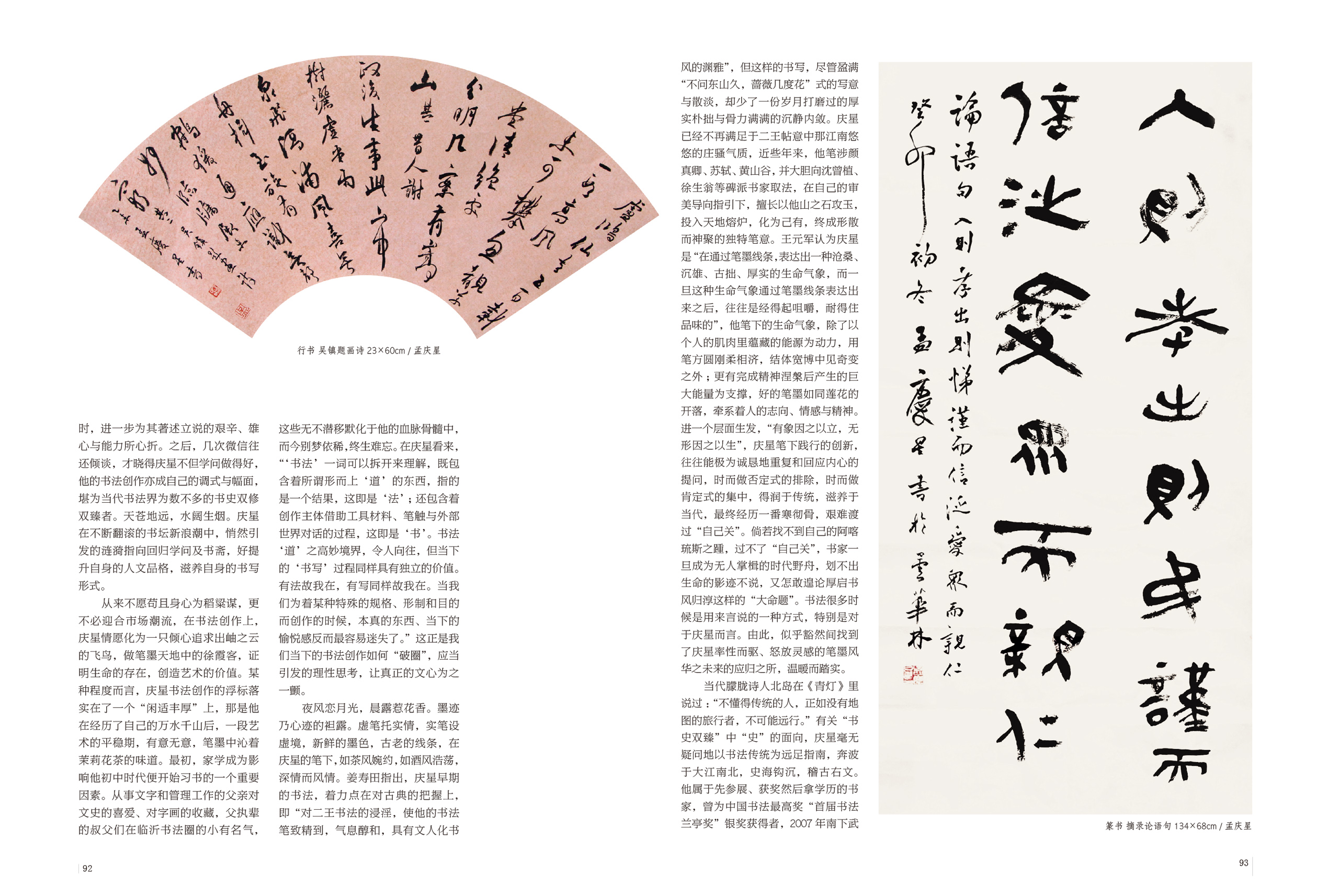 中国书法作为中华民族的文化瑰宝,蕴藏着深厚的文化活力与思想内涵。书法学术素养不仅是书法艺术创作的文化基础,更是重要助力。一位具备了独立意识、无畏精神、批判思维和勤奋姿态的艺术研究者,必将在学术与创作之路上行得更远,登得更高。中国书法家协会理事、湖北省书法家协会主席、湖北美术学院教授孟庆星先生即是这样一位学者型书法家。他理论与实践双修,艺术与文学、史学、哲学并进,良好的综合素质涵养了他高雅的书卷气,风骨毕现的作品尽展了他对书道的深刻感悟。他曾南赴古杭,北上京师,问学研道,内化于心。其清新、古雅、朴拙、天然的书风,将儒家中正平和、道家清虚淡远的美学品质融为一体,此亦正是他本人书法精神的外化。而对于学术,庆星先生不仅倾情于地域书史研究,也兼及宏观视域下诸多当代及历史书法课题,并从专业的深度梳理脉络,评述表里,拨开迷津,点中要害,屡有专著宏篇问世,颇具影响。他过去曾讲:“对我来说,书法教学,书法研究,书法创作构成了我书法活动的主要内容?!倍魑笔∈樾飨?,他还有大量的组织工作需要付出心血和劳动。
