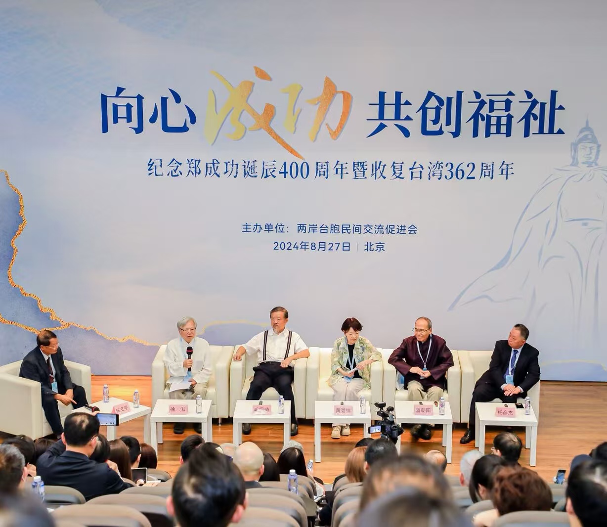 8月27日,在一声声气势磅礴、雄厚有力的延平战鼓声中,由两岸台胞民间交流促进会主办的“向心成功 共创福祉”纪念郑成功诞辰400周年暨收复台湾362周年活动在北京举行。来自岛内政党团体、宗亲团体代表和两岸专家学者、青年学生等200余人,共同缅怀郑成功丰功的伟绩,传承台湾同胞爱国爱乡的光荣传统,展望祖国和平统一的光明前景?;疃雇ü嘀中问窖肓桨蹲已д叨蕴钢3晒Φ募夜榛常掖疤ǘ馈狈至咽屏Ρ嘣斓睦坊蜒?。