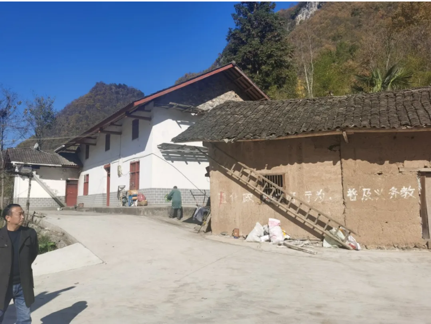 11月27日,我们随湖北省政协办公厅乡村振兴驻村第一书记、工作队队长王平走访农户。在一处白墙灰瓦的新房旁边,有一处土坯结构的老房子。王平敲门,一位正在磨玉米的老人从屋内走出,满身粉尘。