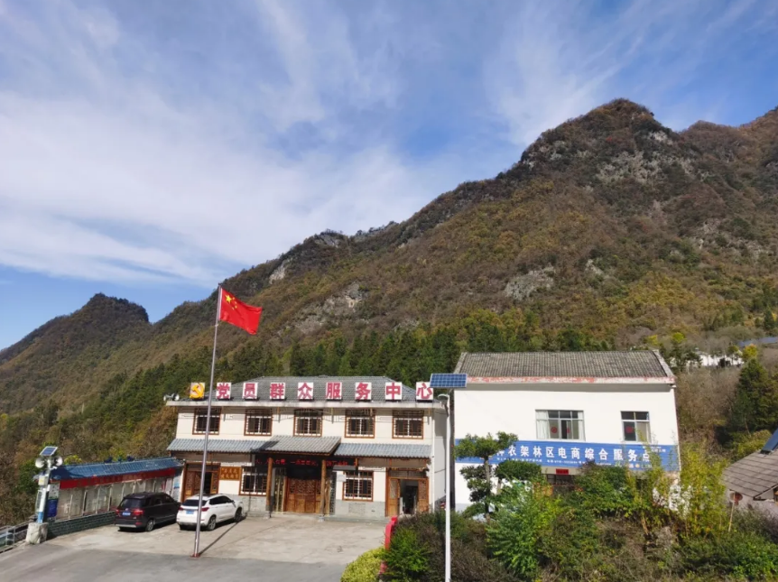△11月30日上午,蓝天白云、阳光明媚。五星红旗和壮美的大山辉映,显得格外明艳。神农架林区新华镇石屋头村的十几位党员特地前来参加由村党支部组织的全体党员大会。图为石屋头村党员群众服务中心。本报融媒体记者 贺春兰 摄