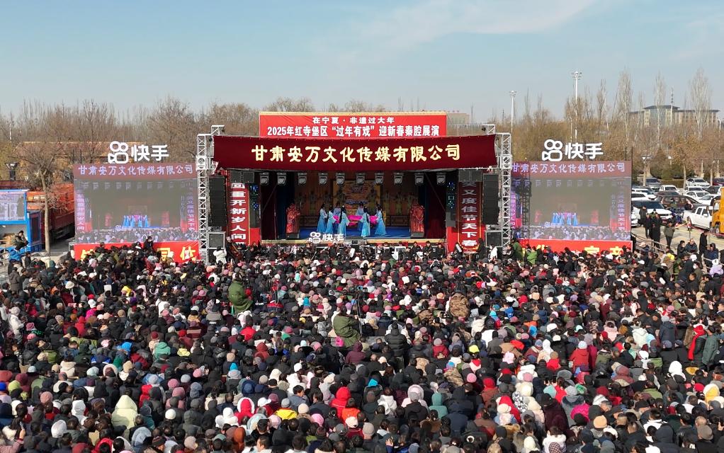 作为元旦春节系列文化旅游体育活动之一,13日至18日,红寺堡区开展“过年有戏”迎新春秦腔展演活动,邀请秦腔剧团每天演出两场,吸引当地和周边县区数万名群众前来观看,点燃了新春第一波文化热浪。众多短视频记录下了剧团露天演出的震撼场面:高潮时,台上演员台下观众齐声唱合;动人处,演员和观众都流下了热泪。