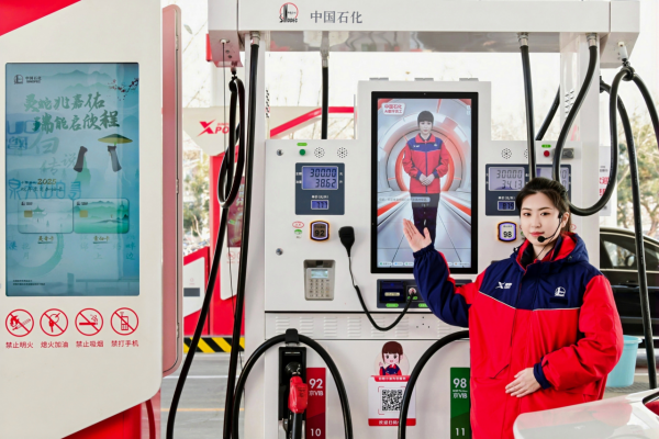 中国石化在全国共有30000余座加能站。近年来,公司持续通过人工智能、大数据、云计算等现代信息技术手段,丰富服务内容、拓展加能场景,特别是,陆续在全国多省(区、市)投用了加油机器人,有效提升了服务效率,受到广泛关注。未来,中国石化将推出更多定制化功能,进一步扩展AI数字员工应用场景,全面提升“油气氢电服”综合能源站智能化建设水平,满足人民日益增长的美好生活需要。