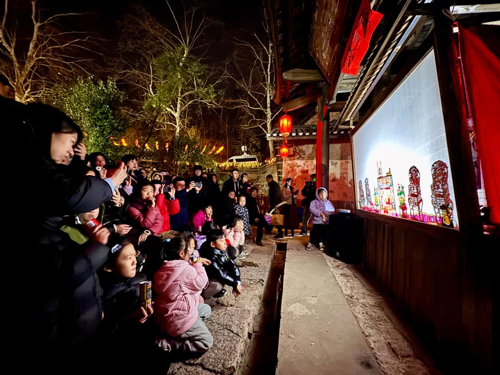 1月23日,观众在湘江新区莲花镇东塘村观看皮影戏表演。新华社记者 张格 摄