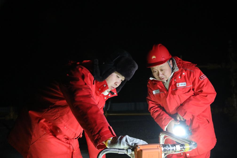 夜色下的大山里寒气逼人。不知不觉间,在零下15摄氏度的野外,李海林和三名同事在井场工作了将近四个小时。