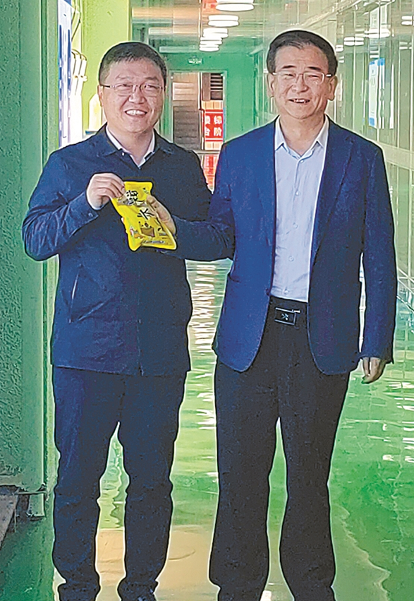 ▲ 黄宝荣(右)调研浆水面生产企业。