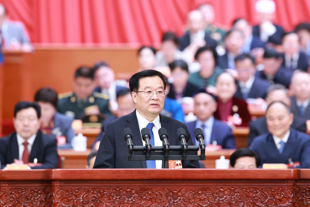 3月7日,全国政协十四届三次会议在北京人民大会堂举行第二次全体会议。这是王国生委员作题为《贯彻五个“必须统筹” 推动经济持续向好》的发言。 新华社记者 王晔 摄
