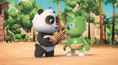 动画《熊猫和甘米熊》画面,扫描二维码可观看动画片段。
