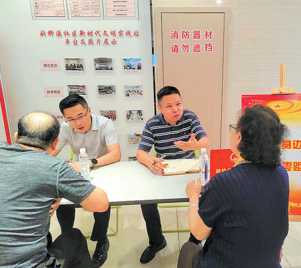 顾钧(右二)与群众交流。(图片由受访者提供)