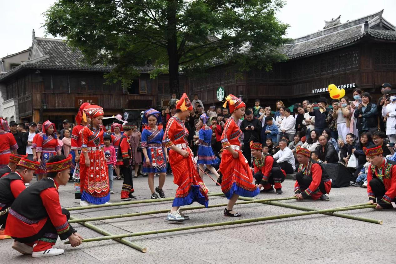 汇集民宗界别资源,民族宗教组委员工作室连续三年在紫阳古街兴善门开展“三月三”民族文化活动。韦凤萍委员将临海非遗与民族文化巧妙结合,带领在临少数民族同胞开展精彩有趣的抛绣球、跳竹竿舞、制五色糯米饭等系列活动,进一步促进了民族交往交融。