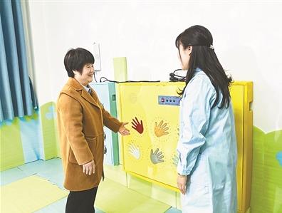 杜丽群委员(左一)在广西南宁市第二妇幼保健院儿童康复中心调研。
