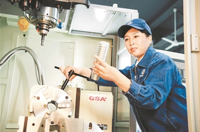 “一开始学的时候什么也不懂,处处都是拦路虎?!蹦嵌问奔?,韩利萍白天练操作,晚上学理论,甚至将一本250多页的编程书完整抄了下来。从逐字逐句写指令代码到宏程序应用再到系统变量开发,她一点点“啃”下了数控加工技术这块“硬骨头”。