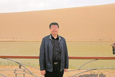 二○一八年四月,张颐武随全国政协调研组在敦煌调研文物?;?。(图片由受访者提供)