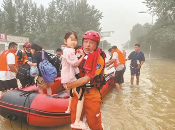 2023年8月,陈春京在河北涿州水灾现场协助转移群众。(图片由受访者提供)