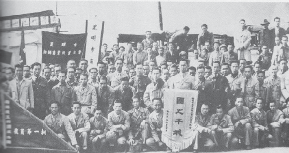 ▲1945年抗战胜利后,南侨机工不负800多万南洋华侨重托完成任务回国前受到昆明各界欢送。