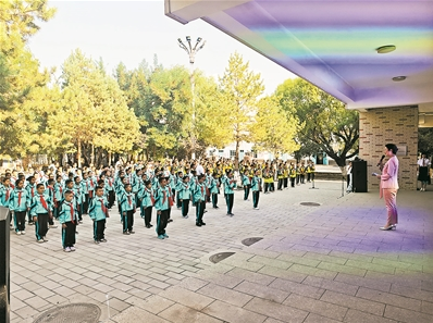 巴彦岱镇中心小学校长郭菊芳介绍,学校把“王蒙书屋”作为阅读核心阵地,每周确保每个班级至少组织一次集体阅读活动。同时,将阅读和艺术巧妙结合,如让学生用快板演绎《三字经》《弟子规》里的经典语句,以加深学生对传统文化的认知与兴趣。