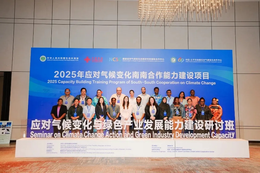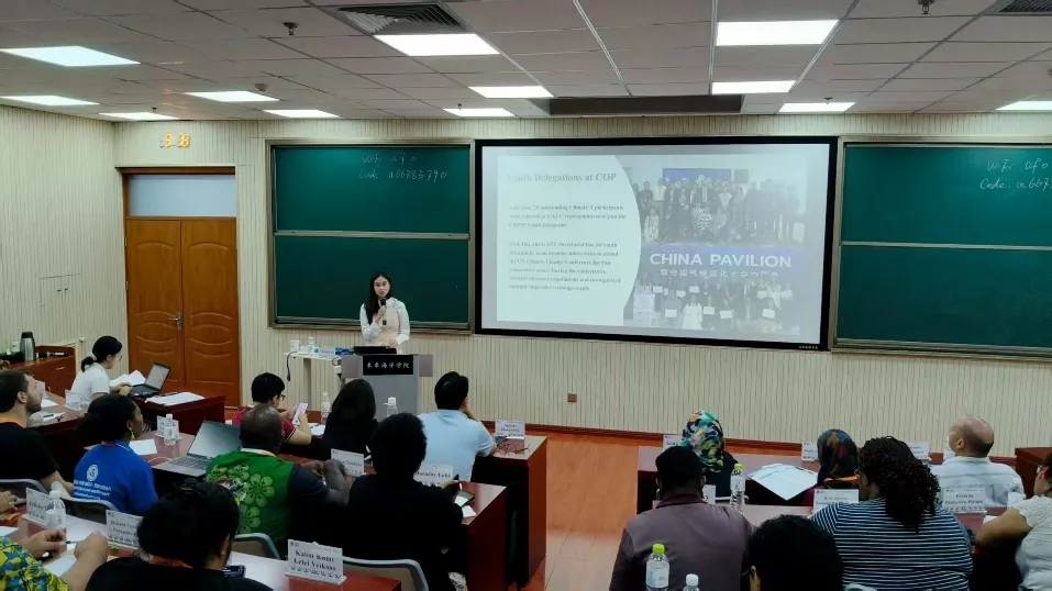 9月5日,何超欣在聊城市“应对气候变化与绿色产业发展能力建设研讨班”上分享“青年路径与中国经验”,结合小岛屿国家面临的挑战,提出如何建设青年参与机制、推动适应型社区项目的具体建议。她与来自太平洋岛国和其他发展中国家的学员互动探讨,分享了中国“双碳”战略背景下青年行动和绿色产业发展的案例,鼓励学员因地制宜推动本国的低碳转型和社区韧性建设。
