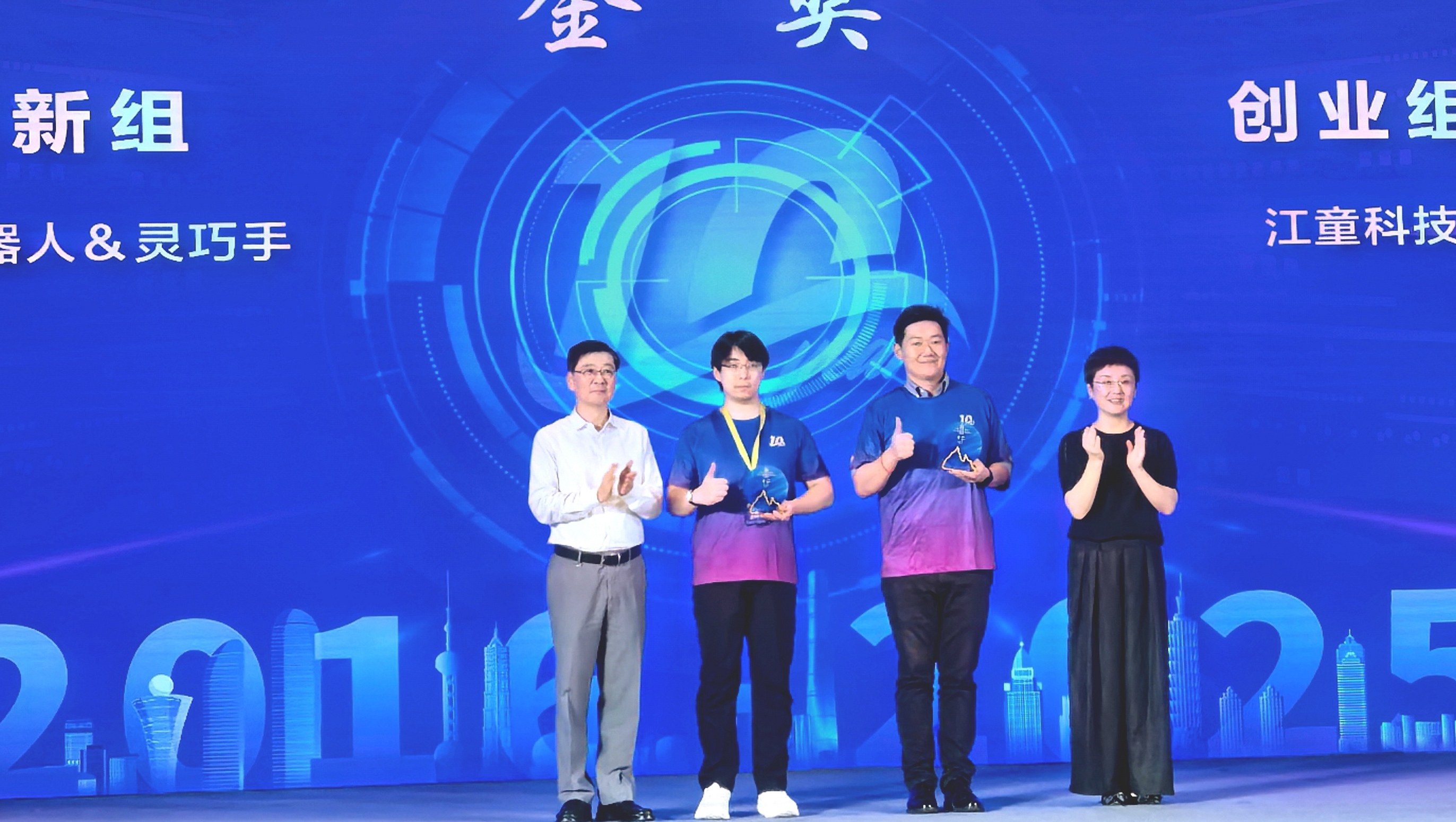 经评审,大赛最终颁发创新组、创业组共20项荣誉:创新组金奖由人形机器人&灵巧手 (大陆项目)摘得;创业组金奖花落江童科技绿色智能船舶(两岸合作项目);高通量制氧模块的研发及产业化等项目入围20强。金山区委书记刘健、上海市台办主任金梅等领导为获奖团队颁奖,彰显上海对两岸青创成果的高度认可。