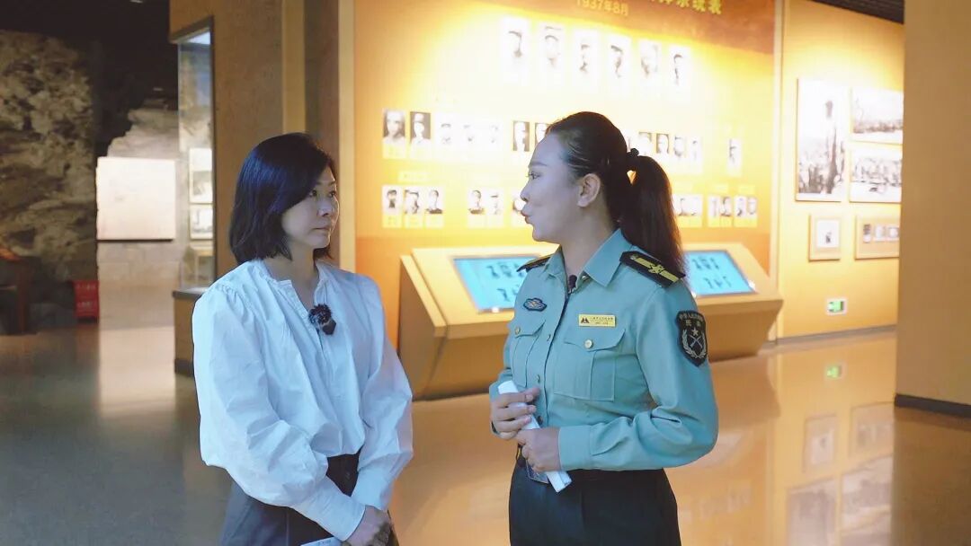 △在八路军太行纪念馆,田悦慧委员(右)为记者讲述红色武乡的抗战故事。