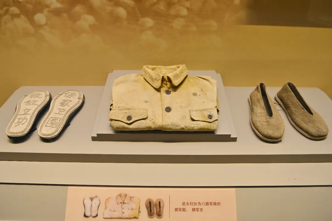 △这是在八路军太行纪念馆展出的拥军鞋和拥军衣。图源:新华社