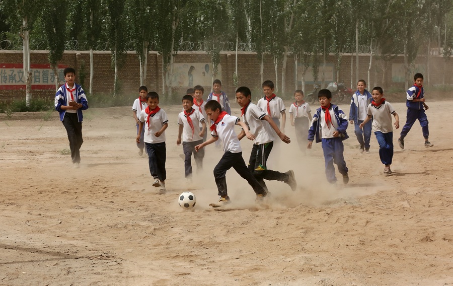 2016年以来,中远海运联合新疆资助教育基金会,在新疆喀什、吐鲁番等地学校添置净化饮水机、乒乓球台、篮球架等设施。图为净化饮水及体育设施投入前后对比。