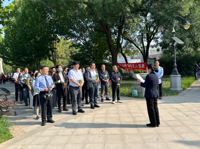 国庆将至,为推动深入贯彻中央八项规定精神学习教育持续深化内化转化,激发机关党员干部爱党爱国爱家乡的浓厚情感,凝聚起干事创业的强大精神动力,9月28日上午,天津市政协有关党支部与驻市政协机关纪检监察组党支部、委员服务中心党总支部,和平区小白楼派出所党支部、和平区小白楼街树德里社区党支部,天津市人民医院有关党支部、天津医科大学第二附属医院有关党支部在和平区中心公园联合开展“迎国庆 祭英烈 承遗志 谱新篇”主题党日活动。