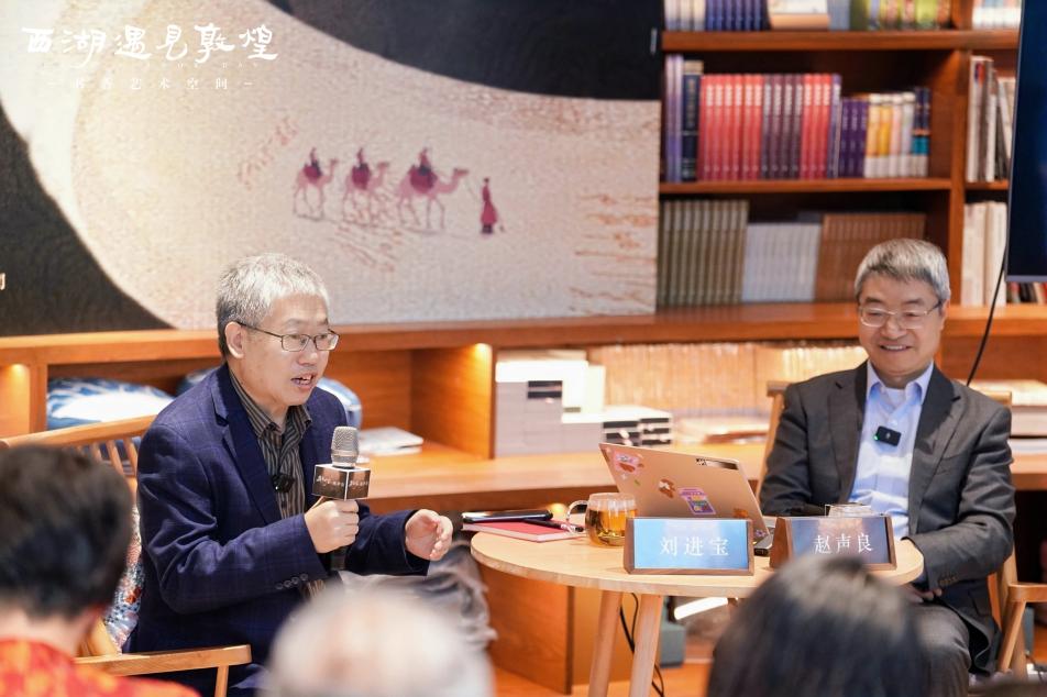当千年石窟的历史回响与西湖的烟波灵秀相拥,一场关于文化传承的思想盛宴在西湖遇见敦煌书香艺术空间温情上演。10月20日,前敦煌研究院院长、著名敦煌学学者赵声良教授做客“遇见大家”系列文化讲坛,在浙江大学求是特聘教授刘进宝的主持下,以“我与敦煌学”为主题,用真挚的叙事与深厚的学养,带现场观众走进敦煌学的学术殿堂,感受中华文明的璀璨光芒。
