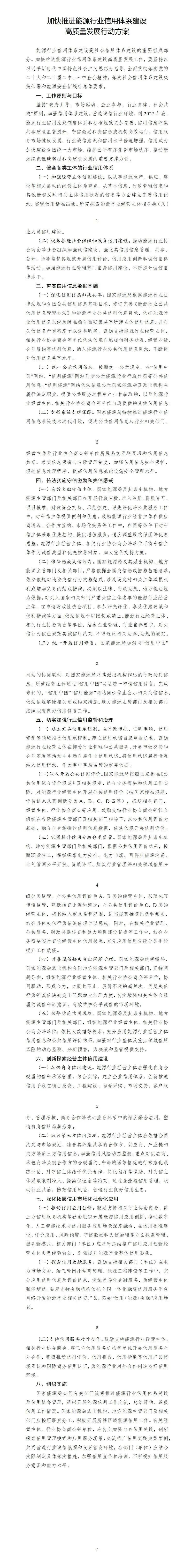 据国家能源局微信公众号消息,按照《中华人民共和国能源法》《中共中央办公厅 国务院办公厅关于健全社会信用体系的意见》(中办发〔2025〕22号)等法律和文件精神,为加快推进能源行业信用体系建设高质量发展,国家能源局近日印发实施《加快推进能源行业信用体系建设高质量发展行动方案》。具体内容如下: