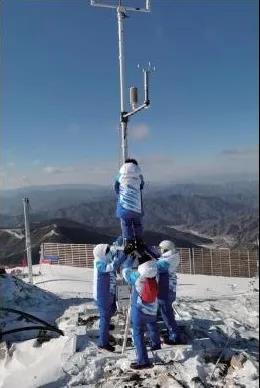 ▲2022年1月15日,冬奥气象服务保障人员在小海坨山维修高山滑雪赛场自动气象站