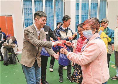 2025年12月14日,马浩文(左一)在香港重庆总会举办的“弘扬国粹 薪火相传—传承国粹·共享安康”中华文化体验日现场与市民互动。