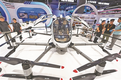 无人机是科技强国建设的重要新兴力量,集中体现智能感知、自主控制、空天信息等高端技术水平。图为国产大型无人机亮相2025年服贸会。本报记者 贾宁 摄