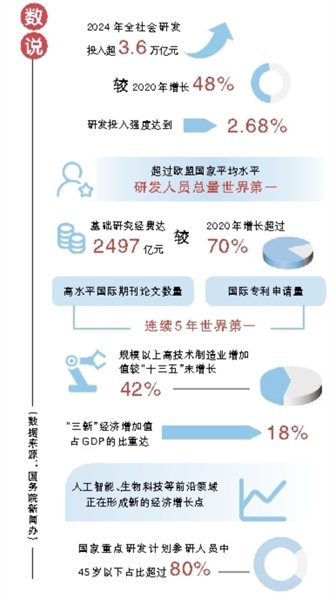 2025年,全社会研发投入超过3.92万亿元,强度达2.8%;创新指数排名已跃升至全球第10位,基础研究经费占研发投入比重持续突破7%……采访中,这些数字被委员们反复提及。
