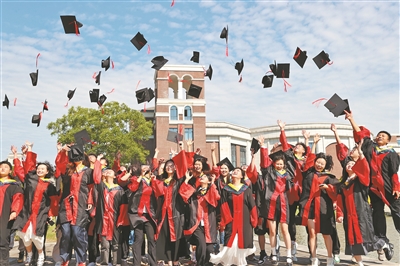 浙江工业大学莫干山校区应届毕业生在校园内留影。 新华社发