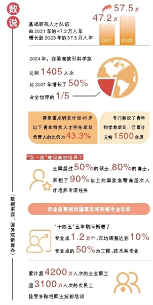 2026年政府工作报告提出“加强拔尖创新人才培养”。随着数字化转型进入“深水区”,数字人才概念不断被重新定义?!笆种泄ㄉ栊枰叨搜蟹⒑涂蒲行褪秩瞬诺耐黄菩源葱拢枰罅磕芄恢С庞τ寐涞?、场景推广和系统运行的多层次数字人才队伍?!苯苯徊浇ㄒ?,要前瞻性地规划创新性人才的成长地图和人才培育体系,打造基于人才成长全链条全要素、对数字人才进行智能识别和针对性培育的大模型;高校要强化数字化人才队伍建设,通过专项培养、人才引进等方式,打造既懂教育规律又懂数字技术的复合型团队。(本报记者 顾意亮)