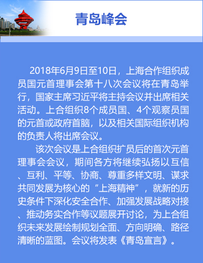“独联体与上海合作组织在维护各成员国安全与稳定、促进经济社会可持续发展方面有相似之处,希望上合组织青岛峰会的召开进一步推动两个组织在安全与经济方面的合作。”独联体执行委员会主席列别杰夫日前在接受新华社记者书面采访时如此表示。 [详细]